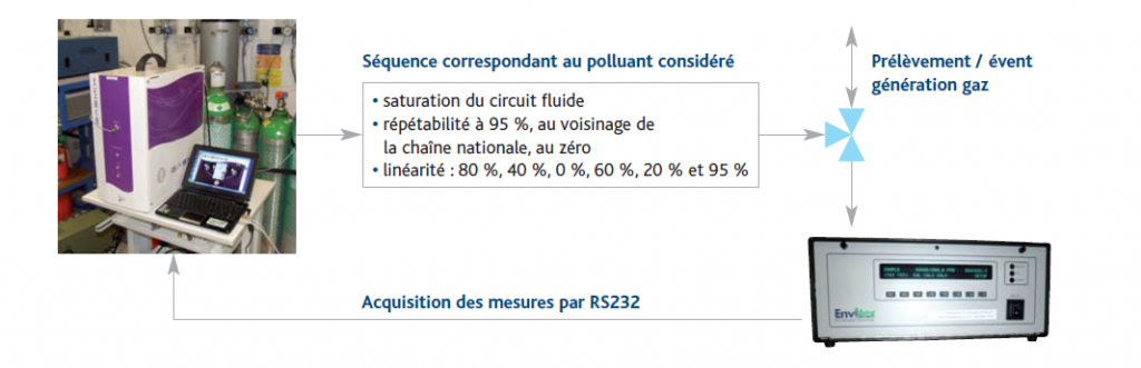 Tests are carried out automatically with a diluter Alytech GasMix. Automatic sequences were configured on the interface of the GasMix ™.